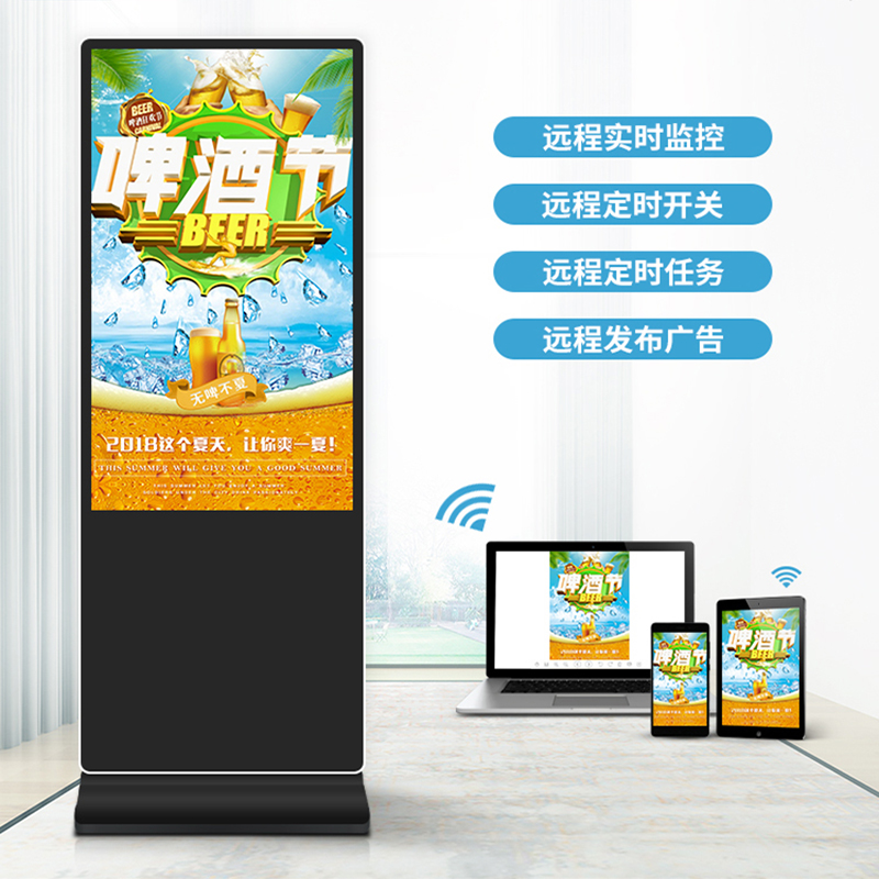 沃为科技立式广告机高清智能,可远程控制播放,尺寸涵盖:32寸/43寸/50寸/55寸/65寸/75寸/86寸/98寸/100寸。